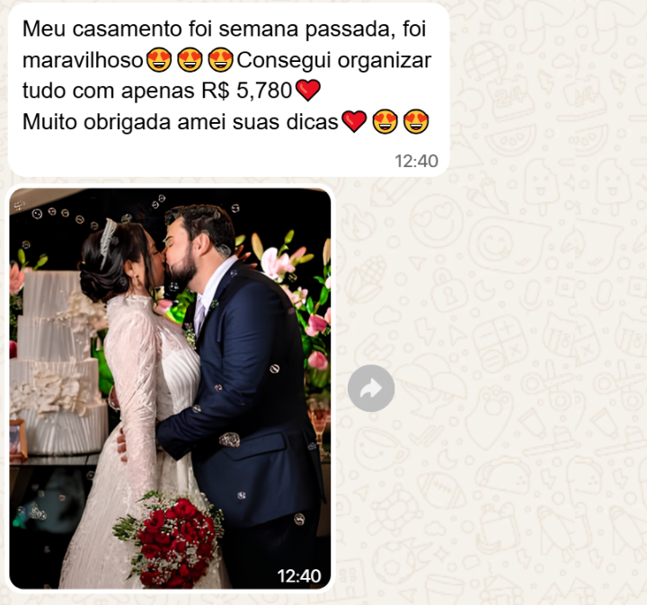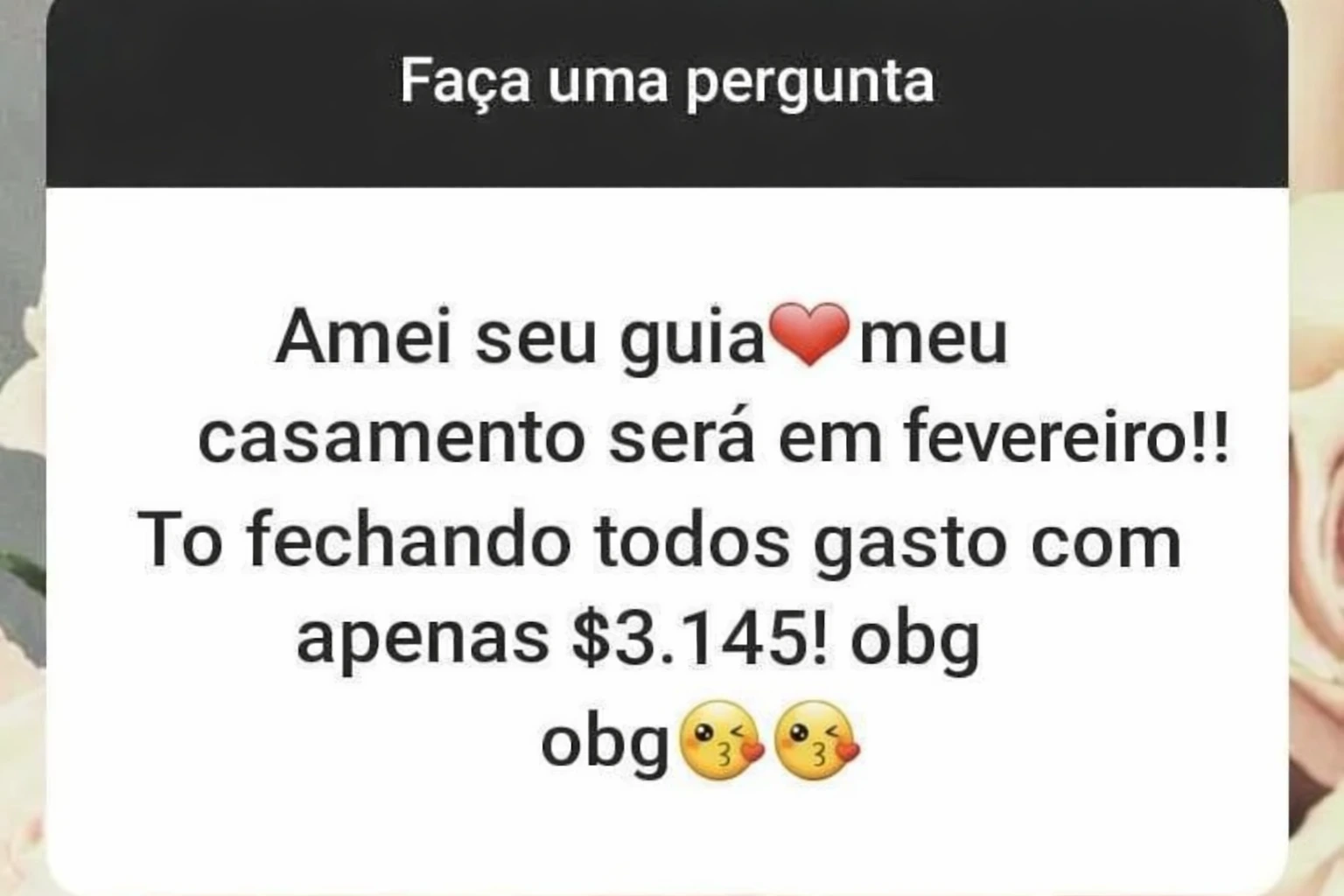 Esse é exatamente o MESMO processo que eu e outras noivas utilizamos para realizar casamentos perfeitos por menos de 8 mil reais.